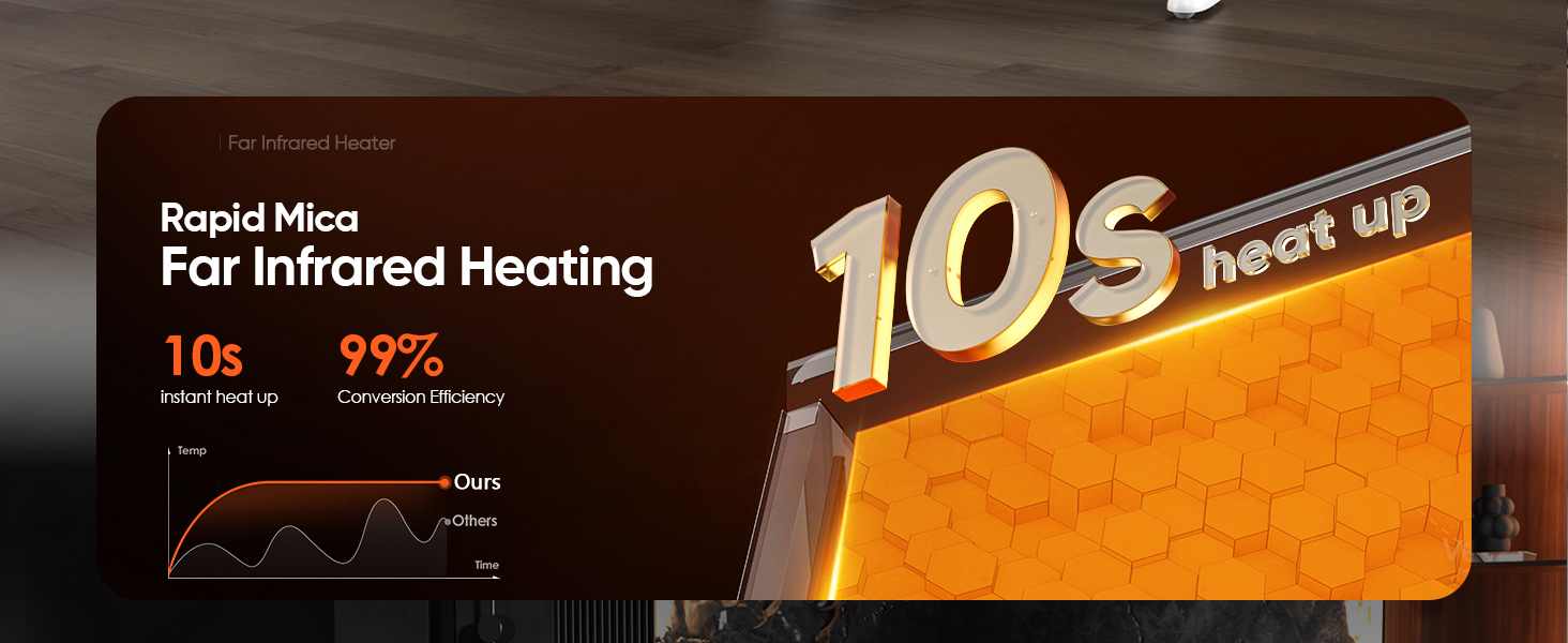 - 180°Panoramic Heating:Imagine stepping into a room where warmth flows in every direction.With 10-second heat-up and 180°wide coverage,this heater wraps your space in a blanket of even,soothing heat—from floor to ceiling,corner to corner