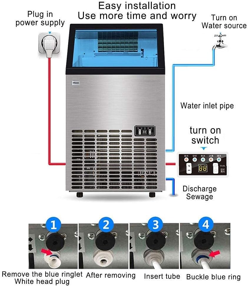 Ice Cube Maker Commercial Ice Maker 50 kg of Ice per 24 Hours Adjustable Thickness 36 Cubes per 15 min Great for Pub Restaurants Hotels Coffee Shops Stainless Ste