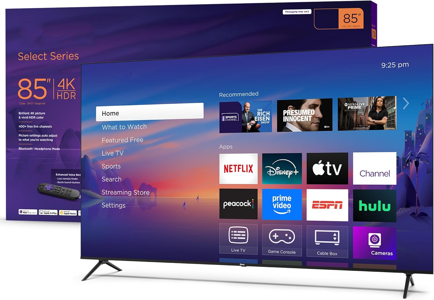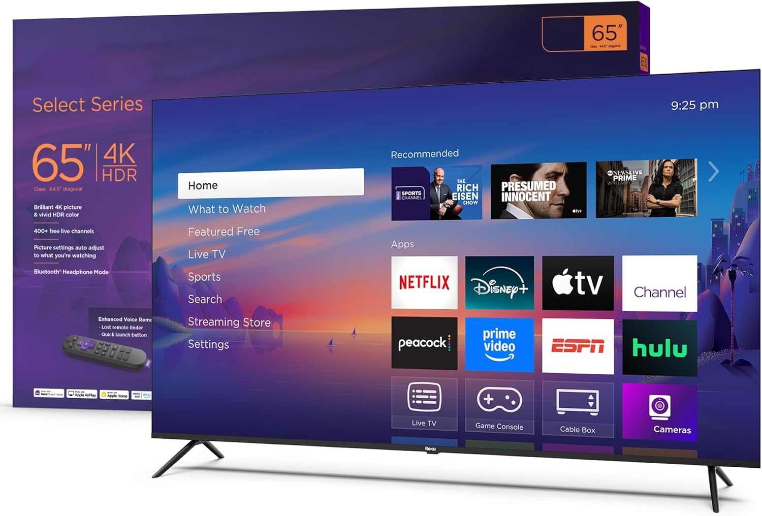 Smart TV 2025 – 50-Inch Select Series, 4K HDR TV –TV with Enhanced Voice Remote – Flat Screen LED Television with Wi-Fi for Streaming Live Local News, Sports, Family Entertainment