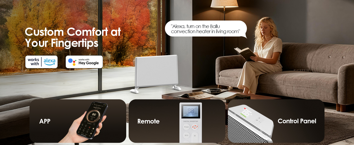 - Advanced App Control:Elevate your comfort with the Ballu Space Heater's powerful app.Set schedules,switch modes,and view power levels effortlessly.Whether you're waking up to a warm room,returning home,or sleeping comfortably,the app lets you control everything on your terms.Plus, with Alexa integration,enjoy hands-free control—perfect for when you're relaxing, working,or on the go