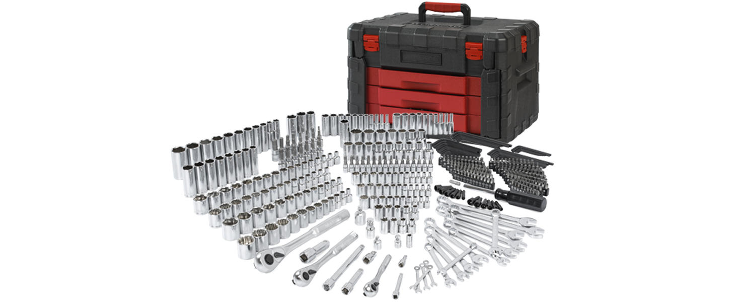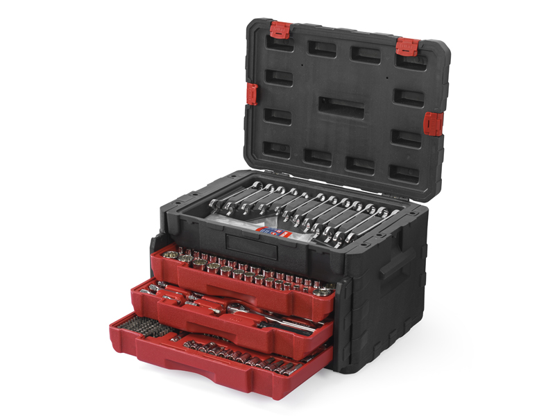 - 450-PIECE TOOL SET: The blow molded case for mechanics with 4 trays includes the most needed and necessary tools that anyone needs in daily life, such as sockets set, quick-release ratchet handle, combination wrenches, magnetic holder, bits set, hex keys, and so on
